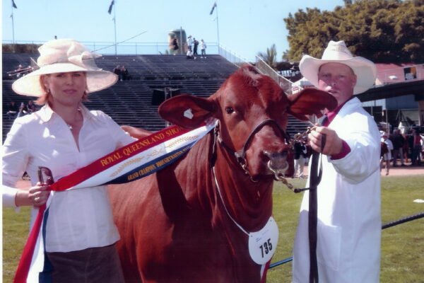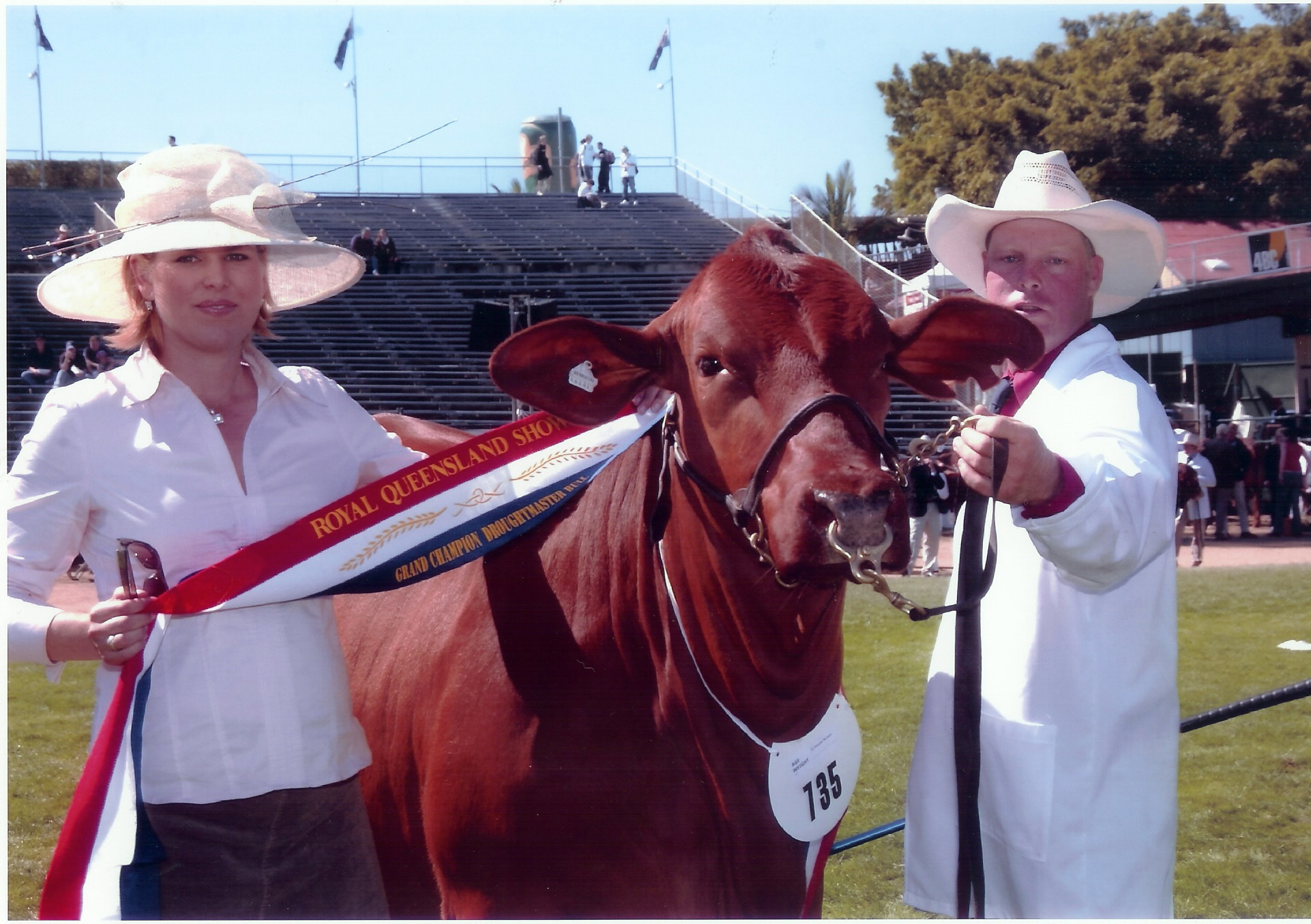 The dam of Mungalla 2128, Mungalla Olivia, is a Mungalla impact dam. She was used in the 2009 ET program, producing 8 progeny, totalling 17 in her lifetime. Most notably, she was crowned Grand & Senior Champion Droughtmaster Female at the 2005 Royal Queensland Show.