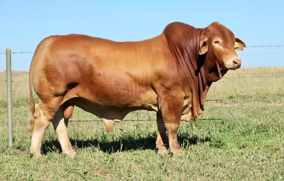 Lamont Titan was purchased from Mac & Gayle Shann from Lamont Stud for $55,000 at the 2021 Droughtmaster National Sale. Titan is a beautifully muscled bull with a tidy underline and sire appeal for days. He unfortunately passed before his time and only managed 3 crops on the ground.